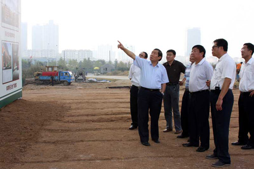10月6日上午,山东省建设厅厅长杨焕彩视察了我校新校区建设情况,校党委书记耿喜华、副书记刘龙海、副校长李东、校长助理朱申红以及新校区建设有关部门的领导陪同视察,陪同视察的还有青岛经济技术开发区管委副主任刘鲁强及建设局、规划局的领导。