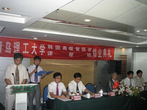 7月25日,我校第五韩国高级管理者课程班举行结业典礼。张光兴副校长致词,教务处、校董会校友会办公室负责人等参加典礼,典礼由国际交流与合作处处长刘旭明主持。