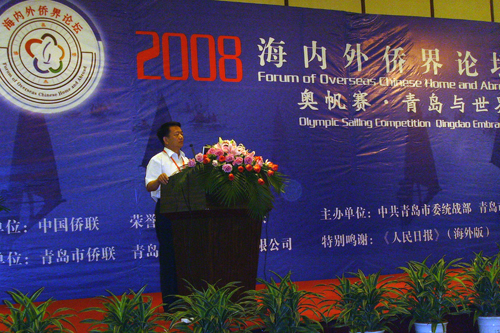 6月26日,由中国侨联支持、山东省侨联荣誉主办、青岛侨联和《山东侨报》社联合举办的“2008海内外侨界论坛——奥帆赛·青岛与世界拥抱”在青岛开幕,为期三天。