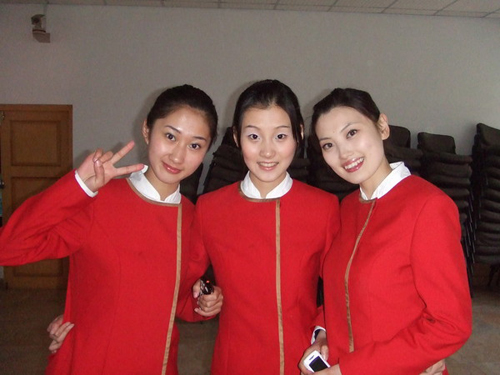冷雪在奥帆基地与其他志愿者在一起(中)