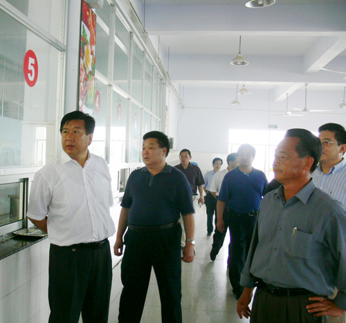 副县长江波听取了学校卫生工作的汇报后,又实地察看了学校的供水设施,并到学生餐厅察看了卫生、加工及学生就餐情况。