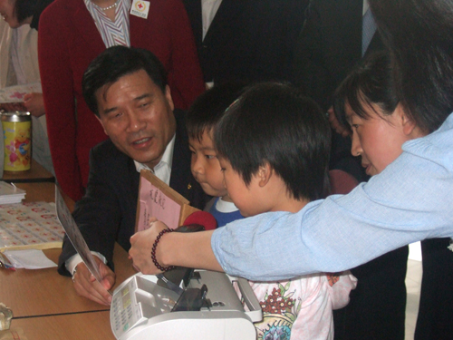 夏耕市长对小朋友们的爱心表示赞赏和感动,欣然为小朋友们题词:“抗震救灾 爱心奉献 与灾区小朋友同行。”