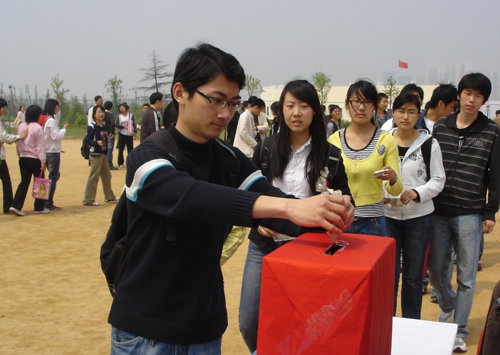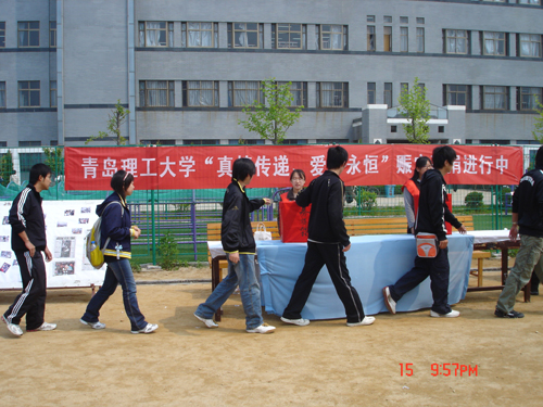 5月12日下午,四川省汶川县发生了里氏7.8级地震,我校师生对此给予极大关注,学生处组织各学院对地震灾区学生展开全面细致的调查工作,及时了解掌握灾区学生思想动态,校区各学生组织也纷纷向学生发出倡议,5月15日由校团委、校学生处联合主办的“真情传递,爱心永恒”抗震救灾集中募捐活动在黄岛校区展开。李东副校长、学生处王维副处长、团委王龙副书记亲临募捐活动现场并进行捐款。