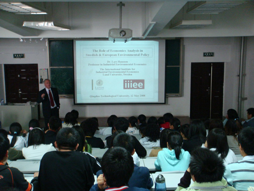 在学术讲座中。Lars教授分析了经济学中的环境评估,强调预防比治理要重要,并以青岛为例,分析了中国经济快速发展的同时所带来的环境污染问题,希望中国能够走上良性发展道路。