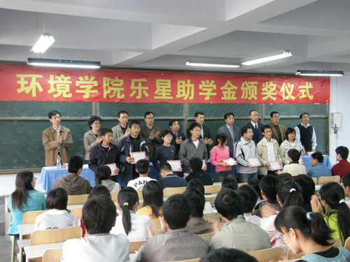 近年来,环境学院在做好校内勤工助学和国家助学贷款的基础上,积极发动社会力量及校友来校设立奖助学金,目前已设立了“乐星助学金”、“创志助学金”、“贾健普助学金”、“积水助学金”、“纪永波助学金”等多项奖学金和助学金,每年的奖助总额达10万元。有力缓解了学生的生活压力,为他们安心学习发挥了积极的“助困促优”作用。