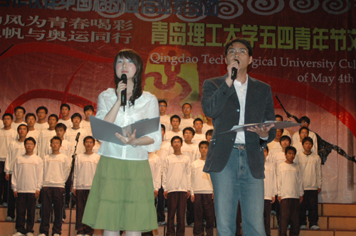 为纪念“五四运动”89周年,以“乘五月的风为青春喝彩;扬梦想之帆与奥运同行”为主题的文艺晚会于5月6日晚在科学会堂举行。晚会由校团委主办、校大学生艺术团承办,校团委副书记王龙等到场观看。