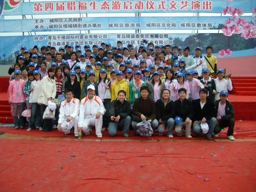 4月20日上午,在惜福镇街道超然社区,奥运冠军王军霞、台湾著名艺人凌锋等前来参加了由城阳区人民政府主办的“拥抱自然,同迎奥运”第四届惜福生态游启动仪式,市委市政府及奥帆委领导出席开幕式。我校琴岛学院大学生文明礼仪宣讲团为大会提供礼仪工作。