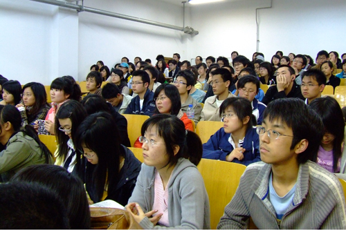 16时许,会场座无虚席,到场的同学用一阵阵热烈的掌声迎接这位令人尊敬的白发学者。王春立教授是中国宋元绘画艺术研究方面的北斗泰山,他以严谨的治学态度、缜密的思维和诚挚的感情感染着在场的每一位同学,为同学们上了一堂生动的艺术理论课,使同学们明白为何中国的传统艺术是如此的博大精深,使大家充分了解了中国传统艺术拥有的强大生命力。