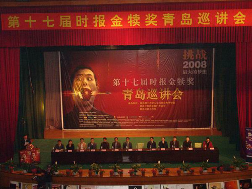 李东副校长首先发表了热情洋溢的讲话:时报广告金犊奖创办于1992年,现在已经发展成为在两岸三地华人学子中颇具影响力的广告盛事;根据社会目前的就业形势和学生的实际需求,学校将加大力度积极举行各类与专业有关的活动,同时鼓励学生踊跃参加国内各项比赛。他希望理工大学的学生能以青春的激情、独特的视角创作出优秀的作品,为我校再添辉煌。随后,青岛市工商管理处处长、市广告协会常务副会长兼秘书长汪传旗先生也为巡讲会做了讲话。