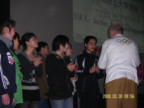 3月30日,德国大众原公共关系总监,世界级汽车营销大师约翰·博克曼到我校讲学。本次报告会由汽车学院院长王丰元教授主持。