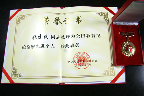 日前,教育部表彰了自党的十六大以来,在教育系统各级纪检监察部门和广大纪检监察干部中涌现出的全面履行纪检监察职责,紧紧围绕教育改革发展稳定大局,积极开展党风廉政建设和反腐败斗争,为保障服务教育事业持续协调健康发展和人才健康成长作出了重要贡献的先进集体和先进个人,我校纪委副书记、监察室主任张建民荣获全国教育纪检监察先进个人称号。