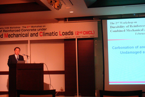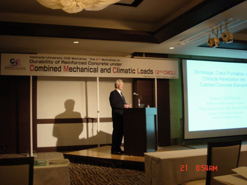 继2005年10月在我校成功召开第一届“Durability of Reinforced Concrete under Combined Mechanical and Climatic Load”(CMCL)国际研讨会后,今年2月,第二届CMCL国际研讨会移师日本北海道大学召开。我校特聘教授Wittmann院士与副校长赵铁军教授应邀出席会议,并分别作了“Shrinkage, crack formation, and chloride penetration into concrete elements”和“Carbonation of and chloride penetration into undamaged concrete”主题报告。会前两天,Wittmann教授和赵铁军教授还作为“Intensive Course”的特邀专家为北海道大学的留学研究生分别作了两个讲座,题目是“Long term durability of cement-based materials exposed to water”、“Capillary suction, damage, and durability of reinforced concrete”、“Permeability of concrete and its durability”及“Corrosion and protection of reinforced concrete induced by chloride”。强化课程班和国际研讨会非常成功。