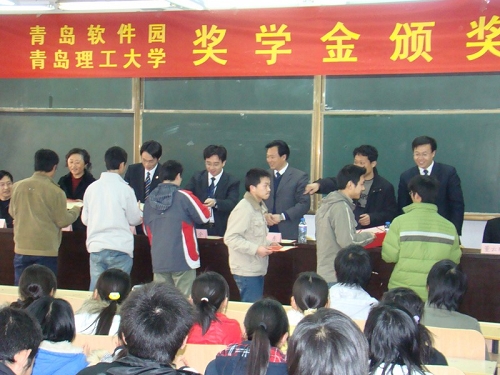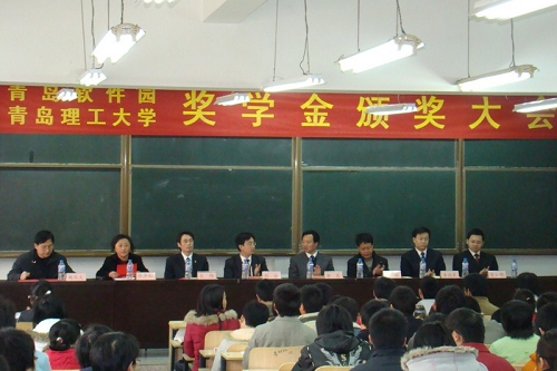 2月28日下午,“青岛软件园”IT技术自学奖励基金颁奖大会在黄岛校区3教109室隆重召开。副校长李东、学生处副处长王维、青岛软件园产业发展中心人力资源培训部部长刘全、计算机学院院长王斌、副院长张秀虹、党总支副书记魏俊文,以及青岛软件园产业发展中心人力资源培训部有关人员出席了本次颁奖大会。2005级全体学生和2006级部分学生参加大会。