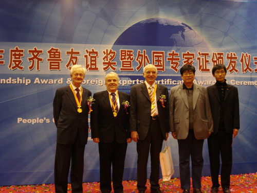 应山东省人民政府邀请,我校外聘院士,混凝土材料界著名的Folker H Wittmann教授于12月12日赴济南参加“2007年度齐鲁友谊奖暨外国专家证颁发仪式”颁奖典礼。在此次典礼上,省政府授予为山东经济社会发展做出突出贡献的18位外国专家 “齐鲁友谊奖”荣誉称号,这是山东省人民政府授予在鲁工作的外国专家最高奖项。