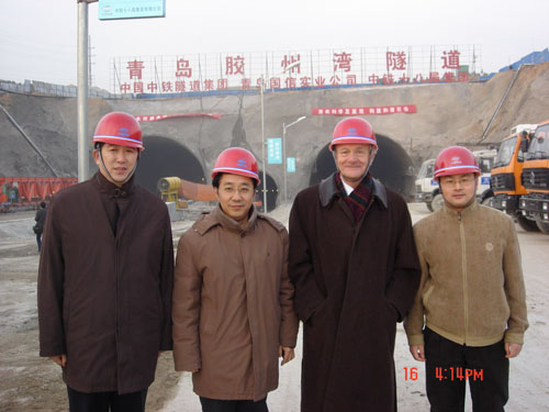 教授对我校的深厚感情让人感动。他参加了我校的改校名揭牌仪式、五十周年校庆、博士点申报等重大活动,见证了我校近年来的飞速发展。这次为了参加我校新校区暨教育小区奠基典礼,再一次更改行程。而且,如果你仔细看,会发现七十高龄的教授用双手握着铁锨,没有戴礼仪小姐奉上的白手套!他对我们说,这样他才能有更真实的感受。奠基仪式后,他又和海底隧道项目负责人赵铁军教授等一同考察了隧道建设工地,并就隧道的耐久性监测等问题提出了建设性的意见。并对下一步研究方案进行了具体指导。