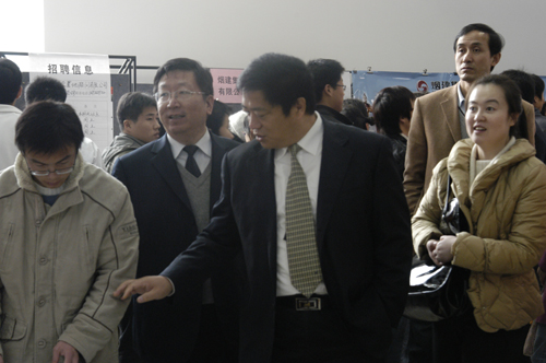山东省高校毕业生就业指导中心王萌主任、省人事厅毕业生就业处李夙夙科长、青岛市人事局毕业生就业处田明处长、吴波堂副处长在我校李东副校长、招就办张英杰主任的陪同下视察了此次双选会现场,各位领导对我校毕业生就业市场的开展给予了高度评价,对参会单位的层次和规模予以高度肯定,同时也对下一步工作的开展提出了宝贵的意见和建议。(招就办)