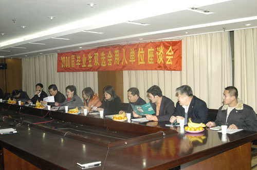 11月28日下午,我校在图书科技楼1908会议室举办2008届毕业生双选会用人单位座谈会,学校领导和相关部门负责人与部分参加我校2008届毕业生双选会的参会单位代表就我校毕业生就业工作的开展和毕业生在用人单位的工作情况进行了细致的交流。