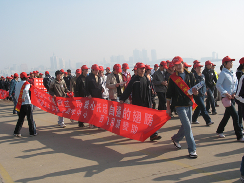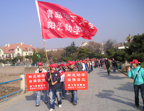 11月24日,由青岛市市南区慈善协会、永利集团3044官网欢迎您阳光助学中心主办的“阳光助学,自强自立,用爱心托起自强的翅膀”环岛城健步行活动拉开帷幕。参加活动的200余名学生分为两组:一组由五四广场出发,途径音乐广场;第二组由栈桥出发,途径海军博物馆、鲁迅公园、八大关、第一海水浴场,最后两支队伍在第二海水浴场汇合,举行会师仪式。