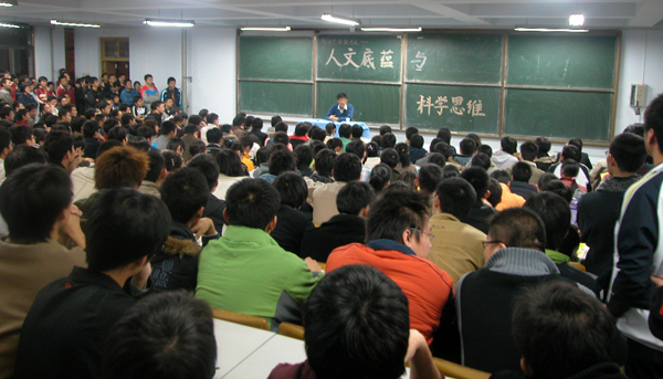 讲座伊始,杨教授便以其幽默风趣的话语博得同学们的阵阵掌声与笑声。讲座中,杨教授由古希腊文明讲到意大利的文艺复兴,由苏格拉底谈到但丁,在讲述人文底蕴的过程中,杨教授旁征博引,引经据典,妙语连珠,甚至当场背诵了诗人食指的一首著名的诗《相信未来》。杨教授对西方文化的了解、对中国文化的研究,不时的引来同学们的热烈掌声。在谈及科学思维的时候,杨教授点评时事,指出虽然我们的国家科技正在进步,但是我们还有很长的路需要走。随后,杨教授回答了同学们的现场提问,博得同学们的热烈掌声。