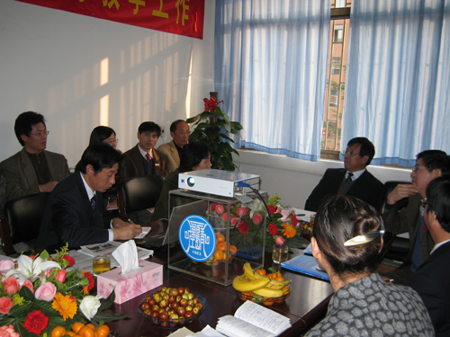 在土木学院会议室,土木学院院长于广明分别从学院目前基本概况、学院的基本教学思路、教学工作及取得的成效以及新办专业的办学条件四个方面进行了汇报。