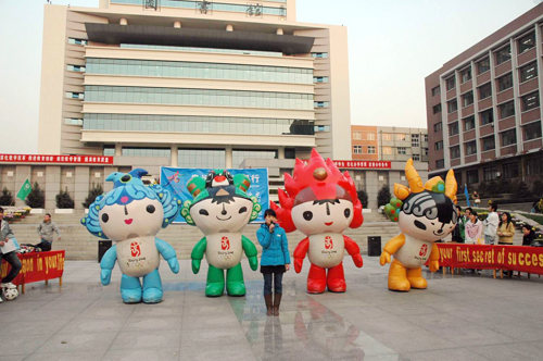 下午4时许,活动在外国语学院活力四射的拉拉操表演中拉开帷幕。虽然天气寒冷,但五个学院的参赛同学热情高涨、踊跃参与、表现积极。选手一边用英语回答各种有关奥运知识的问题,一边进行相关体育运动。既凸显了奥运主题,又增加了同学们的奥运知识。整个活动过程都用英语交流,集知识性、趣味性于一体。活动现场,五个充气福娃憨态可鞠,吸引了许多过往同学前来合影。