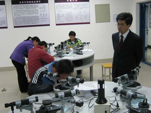 11月19日晚7点,陈刚教授随机抽取9名同学进行了物理实验测试,测试内容为大学物理实验分光计的调整和使用。测试过程中陈刚教授巡视了测试现场操作情况。