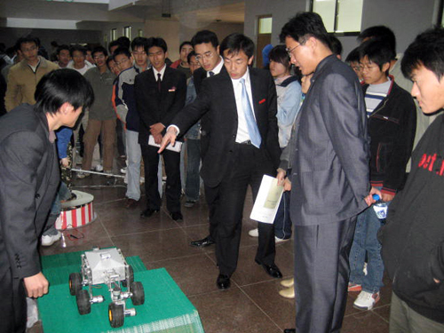 展会上由我校计算机工程学院学生创作的指纹识别器人和语音控制机器人引起了参会同学的广大兴趣。指纹识别器是通过指纹识别技术和数据技术相结合,使指纹识别更简单、快捷。语音控制机器人是将语音识别与单片机技术结合起来,通过语音命令使机器人完成一系列反应动作,一个会应答会跳舞的机器人活灵活现的展现在众人面前,着实令在场同学大开眼界。