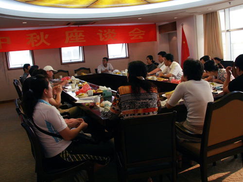 9月21日下午,我校召开中秋座谈会,座谈会由校党委副书记刘龙海主持,副校长李国华出席,学校港澳台属、归侨、侨眷(属)、留学归国人员以及民主党派和少数民族代表参加了座谈会,党委组织统战部有关人员参会。