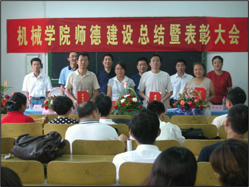 金秋送爽,丹桂飘香。9月10日,值此第23个教师节到来之际,机械工程学院在办公楼308室隆重举行了2005-2007年师德建设总结暨表彰大会,校工会李选民主席出席了会议。会议由院分会主席孟广耀副院长主持。