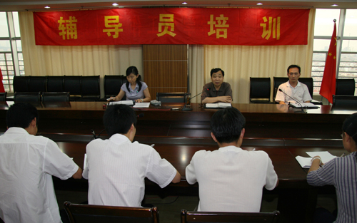 7月20日下午,我校举行新聘辅导员培训会,对今年即将踏上学生工作岗位的14位辅导员进行了工作培训,提出了具体要求。校党委副书记杨向荣、学生处处长沈文青、副处长郭建锋等出席会议。