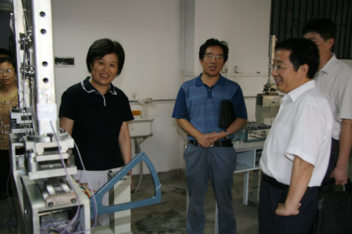 座谈会后刘处长一行到建筑馆及正在建设中的3个骨干学科实验中心进行了实地检查,详细询问了项目建设的进展情况。
