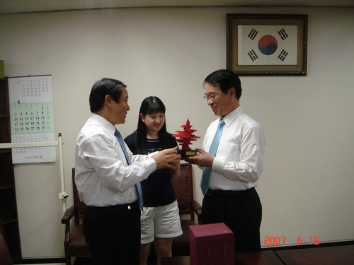 19日上午,代表团还访问了与我校已有2年多合作关系的世界韩国语认证考试委员会(KLPT)。KLPT是由韩国语最高权威机构韩语学会主管,把母语非韩语的外国人及海外同胞作为考试对象,检测其韩国语能力和实际表达能力的考试。2005年7月起开始在我校考试,2006年5月正式设立考点。双方一起回顾总结了过去两年来的经验,坦诚地交换了意见,找出合作中需要改进提高的方面。双方对继续合作和进一步发展双方关系表现出积极的态度。访问期间,双方签订了新一轮的合作协议。