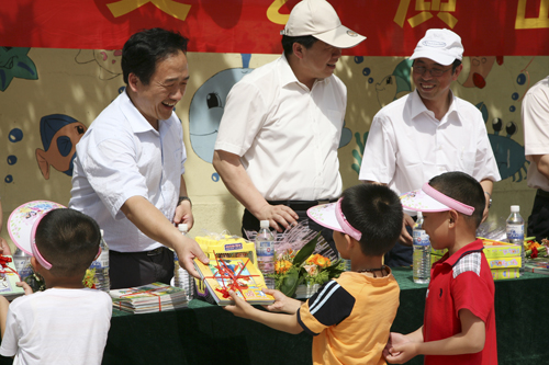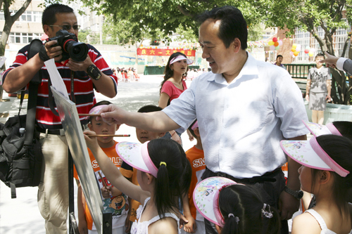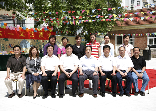 校长仪垂杰、副校长李国华等领导来到幼儿园与全体小朋友共同庆祝节日,为小朋友带来了许多节日礼物并亲自分发到小朋友手中。仪校长还拿起画笔和小朋友共同作画并题词“祖国花朵、民族未来”,充分体现了校领导对幼儿成长、幼教工作的关心。