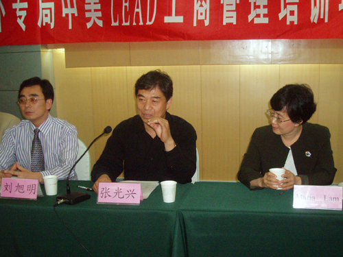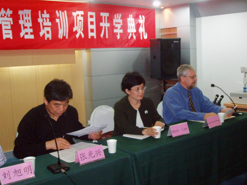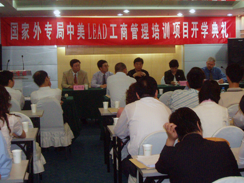 5月25日下午,我校承办的2007年国家外专局高层工商管理培训(简称LEAD项目)开学典礼在我校隆重举行。我校副校长张光兴、研究生处处长王旭春、国际交流与合作处副处长刘旭明、来自美国的两位任课教师Prof. & Dr. Maria Lam和Prof. & Dr. Gary Vander Plaats以及来自青岛市各企业和我校管理学院、经贸学院、商学院的60名学员参加了会议,会议由张光兴副校长主持。