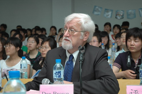 杨向荣副书记代表校党委、行政发表了热情洋溢的讲话,他介绍了学校近几年取得的成绩,并对外语学院的工作给予了充分肯定。他指出,经过多年的实践和探索,外语学院形成了独具特色的“课上课下交融,校内校外共生”的办学特色;在近年的专四、专八考试中,成绩均超出全国同类高校平均通过率20多个百分点;在各项全国大赛中,成绩较为理想,如张钦同学荣获全国英语演讲比赛三等奖,潘晓伟和李方斐同学荣获全国英语辩论赛三等奖。