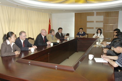 5月24日德国联邦教育科技部高级官员福尔曼先生、Furrer博士、德国Darmstadt工业大学Wagner教授一行来我校进行交流,副校长赵铁军接待了客人,科技处处长王在泉、环境学院院长吕谋等学术骨干参加了会议。