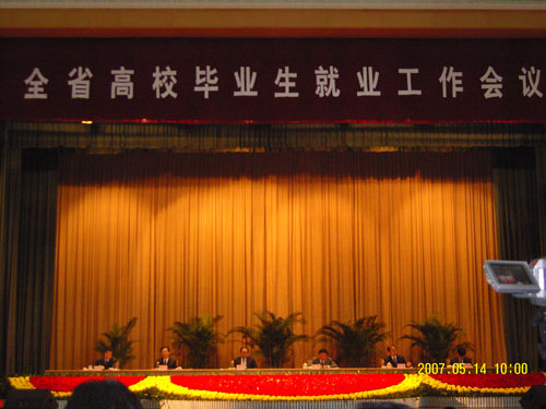 5月14日,全省高校毕业生就业工作会议在济南南郊宾馆隆重召开,主席台就座的有山东省常务副省长王仁元,副省长黄胜,省委组织部副部长、省人事厅厅长、省编办主任焦连合,省委高校工委书记、省教育厅厅长齐涛,省政府副秘书长韩金峰,省劳动和社会保障厅副厅长张凤光。
