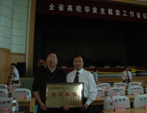 会议由黄胜副省长主持,焦连合厅长宣读了《关于表彰山东省普通高等学校毕业生就业工作先进集体、先进个人和扎根基层建功立业优秀人才的通报》,我校被评为山东省普通高等学校毕业生就业工作先进集体,招生与就业委员会办公室主任张英杰被评为先进个人,并荣记二等功。
