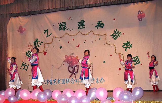 4月26日晚,由大学生艺术团和环境学院联合主办的“还自然之绿 建和谐校园”暨“永利集团3044官网欢迎您第一届环境与能源科技周”开幕文艺晚会在北院礼堂举行。校团委陈伟书记、环境学院党总支副书记王雄老师莅临晚会现场观看了表演。此次晚会以环保为主题,呼吁在校大学生深切关注日益严重的环境问题,积极行动起来为生态保护和环境改善贡献自己的力量。