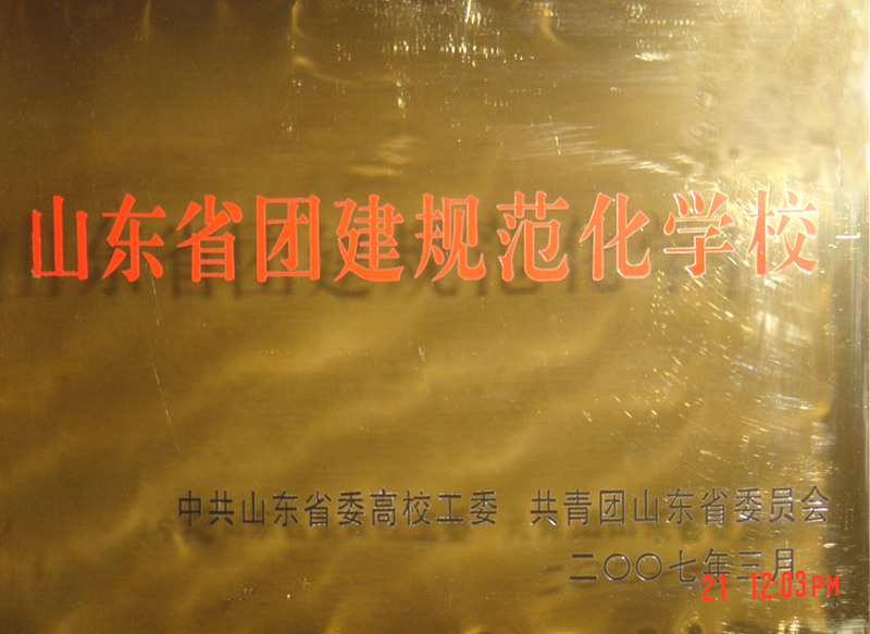 近日,中共山东省委高校工委、共青团山东省委联合表彰了在全省共青团规范化建设评估中取得优异成绩的部分高校,我校被授予“山东省团建规范化学校”荣誉称号。