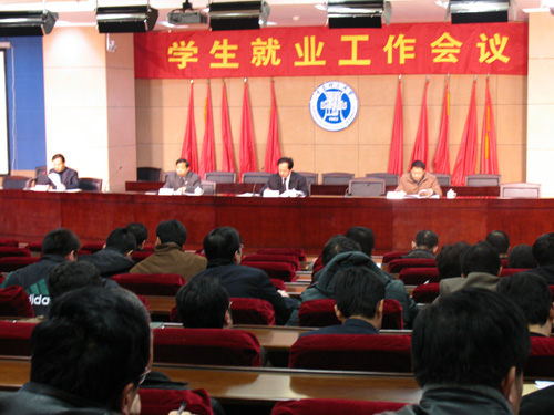 为进一步总结交流2006学年学生就业工作取得的成绩和经验,认真分析目前面临的形势和困难,全面部署2007年毕业生就业工作,1月10日下午,学校召开就业工作会议。校领导仪垂杰、杨向荣、赵铁军、李东出席会议,各学院党总支书记、院长、全校学生工作干部以及相关职能部门的负责人等参加了会议。