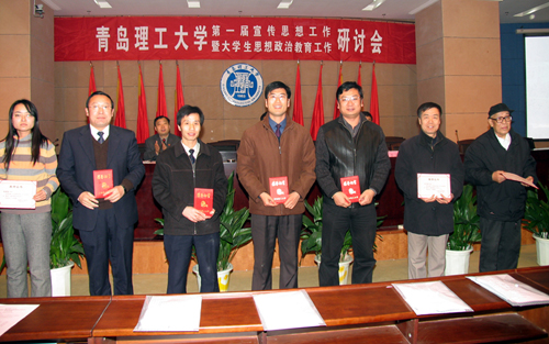 12月21日上午,我校第一届宣传思想工作暨大学生思想政治教育工作研讨会在四方、黄岛两校区同时隆重召开。会上,校党委书记耿喜华做了题为《高举旗帜 锐意创新 努力开创宣传思想工作新局面》的重要讲话。会议由校党委副书记杨向荣主持,校党委副书记刘龙海、副校长李东出席。大会还表彰了宣传思想工作先进个人,并为获奖论文作者现场颁奖。