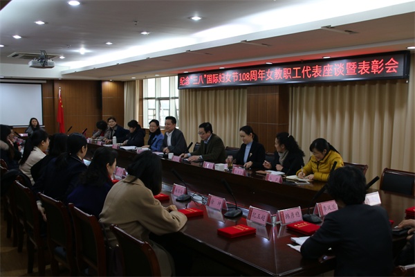 3月7日下午,学校召开纪念“三八”国际妇女节108周年女教职工代表座谈暨表彰会。校党委副书记张殿恒出席并主持会议,校工会、妇委会负责人与50多名女教职工代表欢聚一堂,表彰先进,分享经验,庆祝节日。