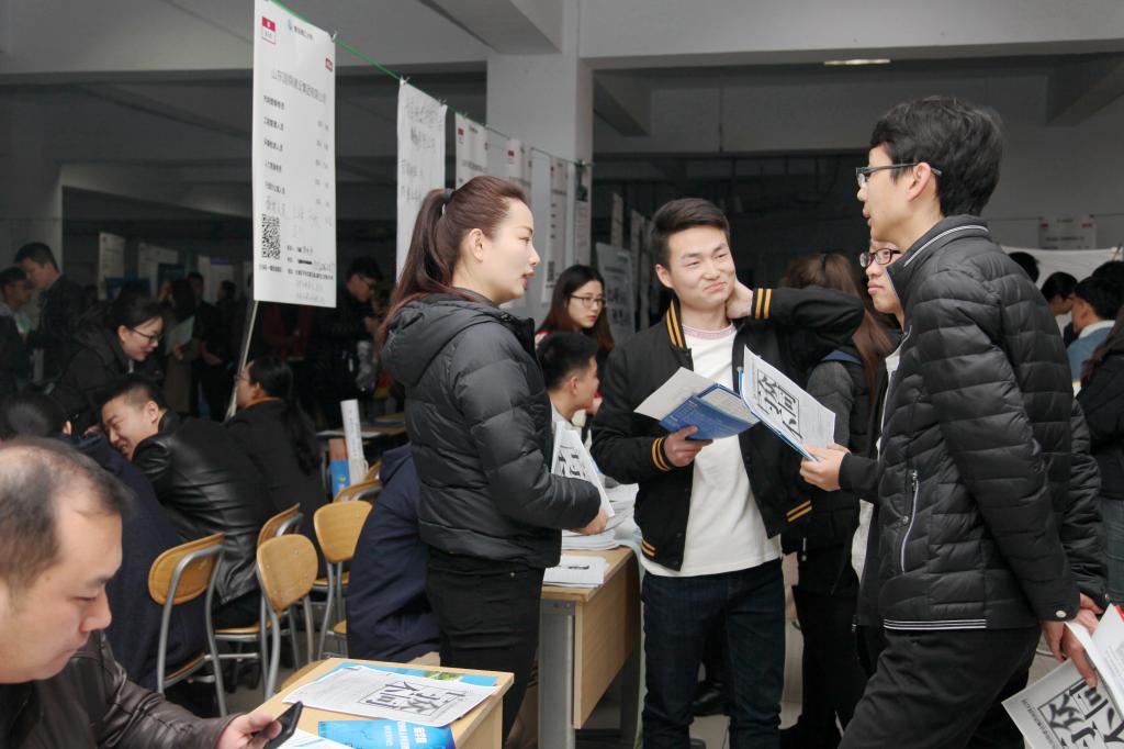 副校长齐德义及相关部门、学院负责人与招聘企业单位现场交流 摄影:申维东