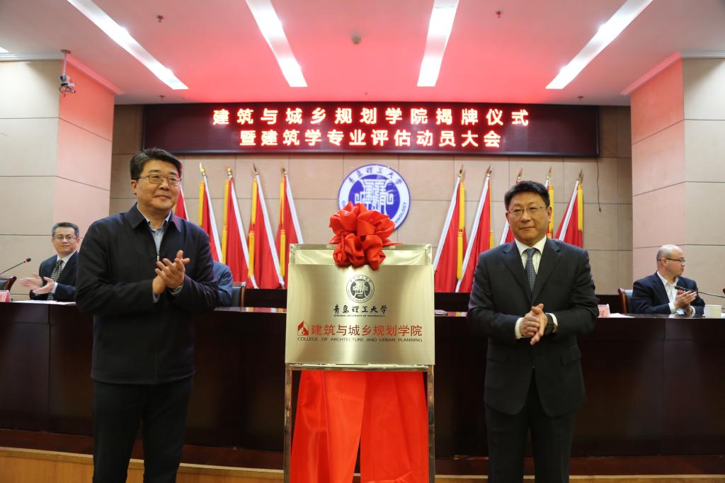 校党委书记、校长王亚军与建筑与城乡规划学院院长许从宝共同为建筑与城乡规划学院揭牌