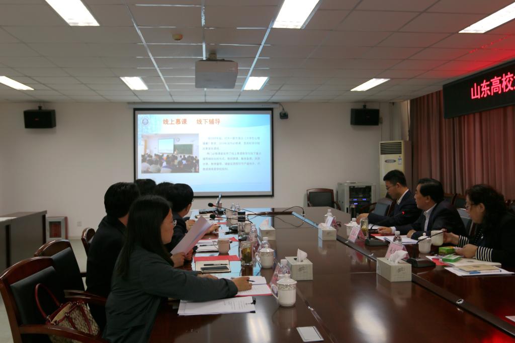 汇报会上,学生处处长宋玲从我校心理健康教育体制机制建设、师资队伍建设、教学科研工作、示范中心创建规划等方面作了汇报。她指出,加强和改进大学生心理健康教育是新形势下促进大学生全面发展、提高人才培养质量的重要途径和手段,是高校实施素质教育的重要措施,也是推动高等教育改革、加强和改进大学生思想政治教育的一项重要任务。我校历来高度重视心理健康教育工作,紧紧围绕立德树人的根本任务,打造专业队伍,创新工作载体,构建了以大学生心理健康教育课堂为主阵地,以各种大学生心理志愿者协会为平台,以丰富多彩的文化活动为载体的多元心理健康教育体系。2017年我校严格按照山东高校心理健康教育示范中心的标准和要求开展各项建设工作,希望专家组认真把脉、严格审核,提出宝贵意见和建议,进一步促进我校心理健康教育事业又好又快发展。