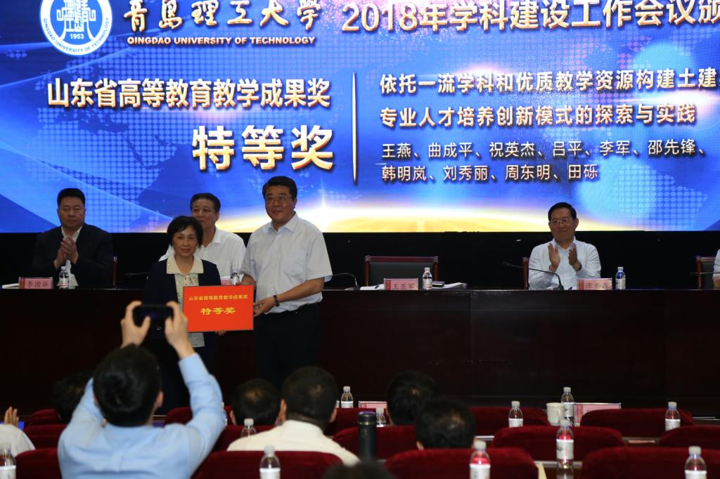 会议隆重表彰了在教学、科研、学位点建设工作中取得突出成绩的先进集体和个人。“山东省高等教育教学成果特等奖”获得者王燕,“山东省高等教育教学成果一等奖”获得者戴吉亮、宋志文、李长河、金祖权、郝赤彪、赵金先、刘继明、王在泉、沈文青、于德湖,“山东省高等教育教学成果二等奖”获得者胡保玲、范兴奎、时伟、李捷、刘文锋、郭印、王曙光、岳丽宏;山东省科技进步一等奖”获得者张春巍,“教育部高校科学研究优秀成果二等奖”、“山东省专利奖一等奖”获得者李长河;“山东省科技进步二等奖”获得者仪垂杰、王旭春;“学科建设优秀奖”机械工程、社会工作等两个学科所属学院,“学科建设贡献奖”建筑学、力学、马克思主义理论、统计学、翻译硕士、水利工程、地质资源与地质工程等7个学科所属学院的代表依次上台领奖。