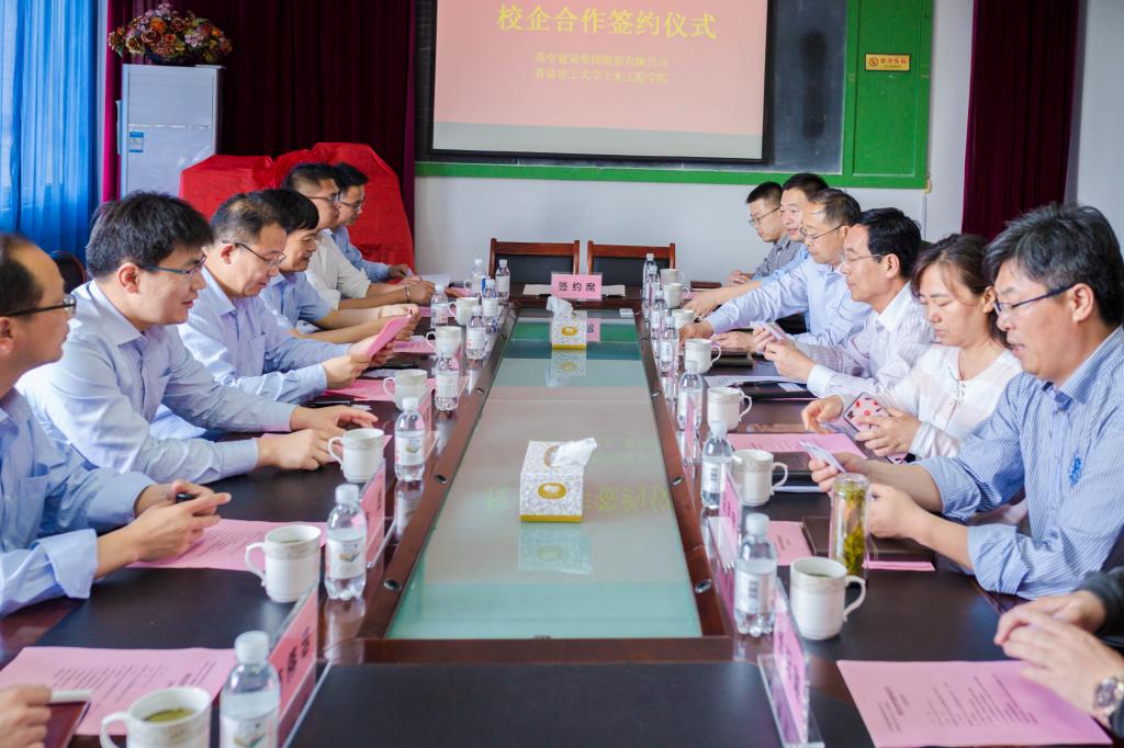 5月28日下午,土木工程学院与江苏省苏中建设集团产学研合作签约仪式在1号教学楼306学院会议室举行。副校长齐德义、学生处处长宋玲、土木工程学院院长苗吉军等相关领导,苏中建设集团董事、副总裁顾少军、副总裁、中原区域总经理李瑞荣、中原区域常务副总徐海平、总经理助理顾成臣、青岛分公司总经理徐朗等出席签约仪式,仪式由土木工程学院党总支书记曲成平主持。