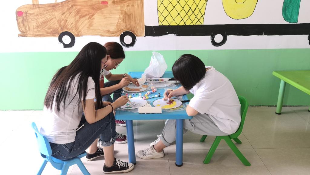 第一个项目是在社区的小太阳幼儿园开展了艺术课堂。志愿者根据自己的专业特长和兴趣爱好为当地学生开设了国画、手工、武术、音乐等课程。每一门课程都有专门的负责人编写课程,提前写好教案,确保上课的内容和形式都适合孩子们,从而使支教活动更有效果。通过支教,孩子们受到艺术的熏陶,对艺术产生了浓厚的兴趣。
