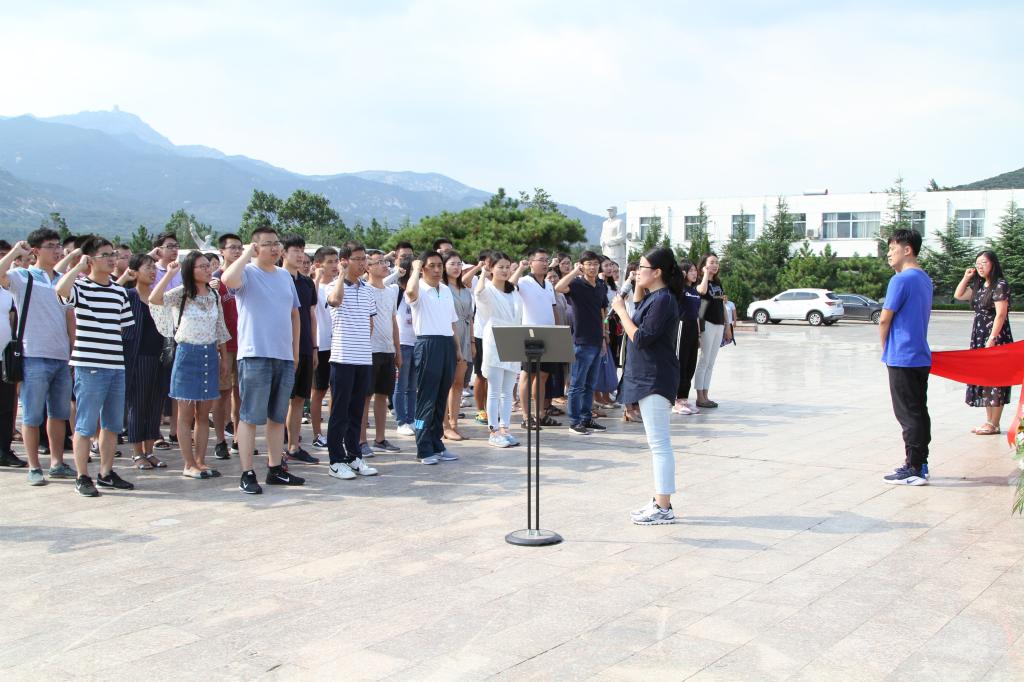 理学院新教师侯文杰博士在聆听王亚军书记的讲话后深受教诲与启迪,在典礼上即兴分享了这几天学习培训对自己思想与心灵的触动:“岗前培训,收获满满;红色之旅,深有意义;沂蒙青山,傲然挺立;老区军民,刚立坚毅……”,感谢学校为新教师提供这样一个难得的学习与交流机会,表示今后一定秉承和弘扬学校的优良传统,在教书育人的工作实践中虚心学习、勤奋苦干、回报社会。